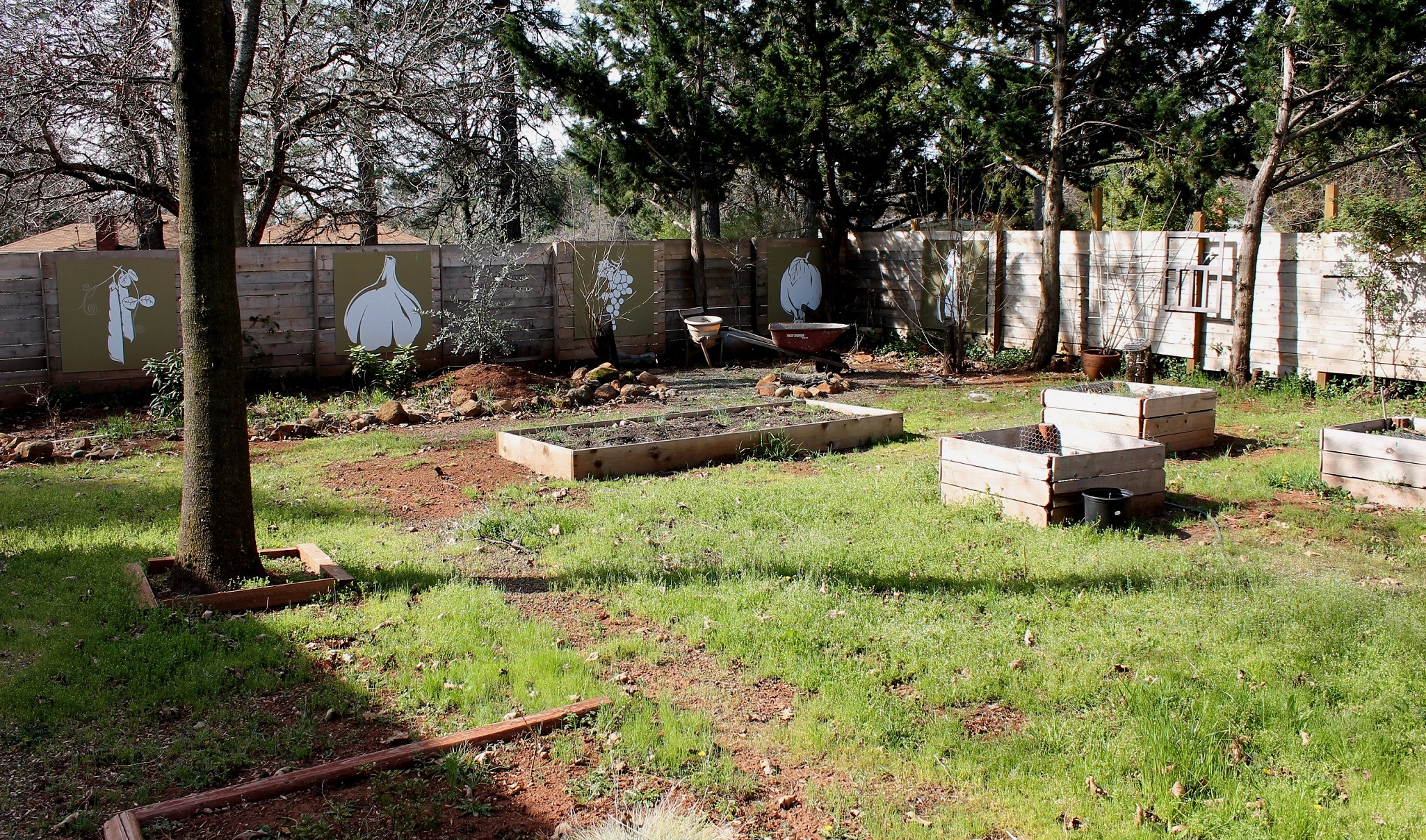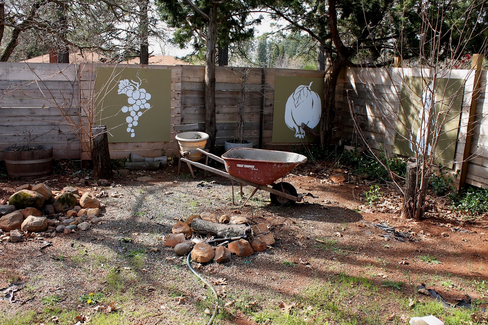 I’d painted the panels hanging on the fence a couple years ago.  They’re holding up pretty good.