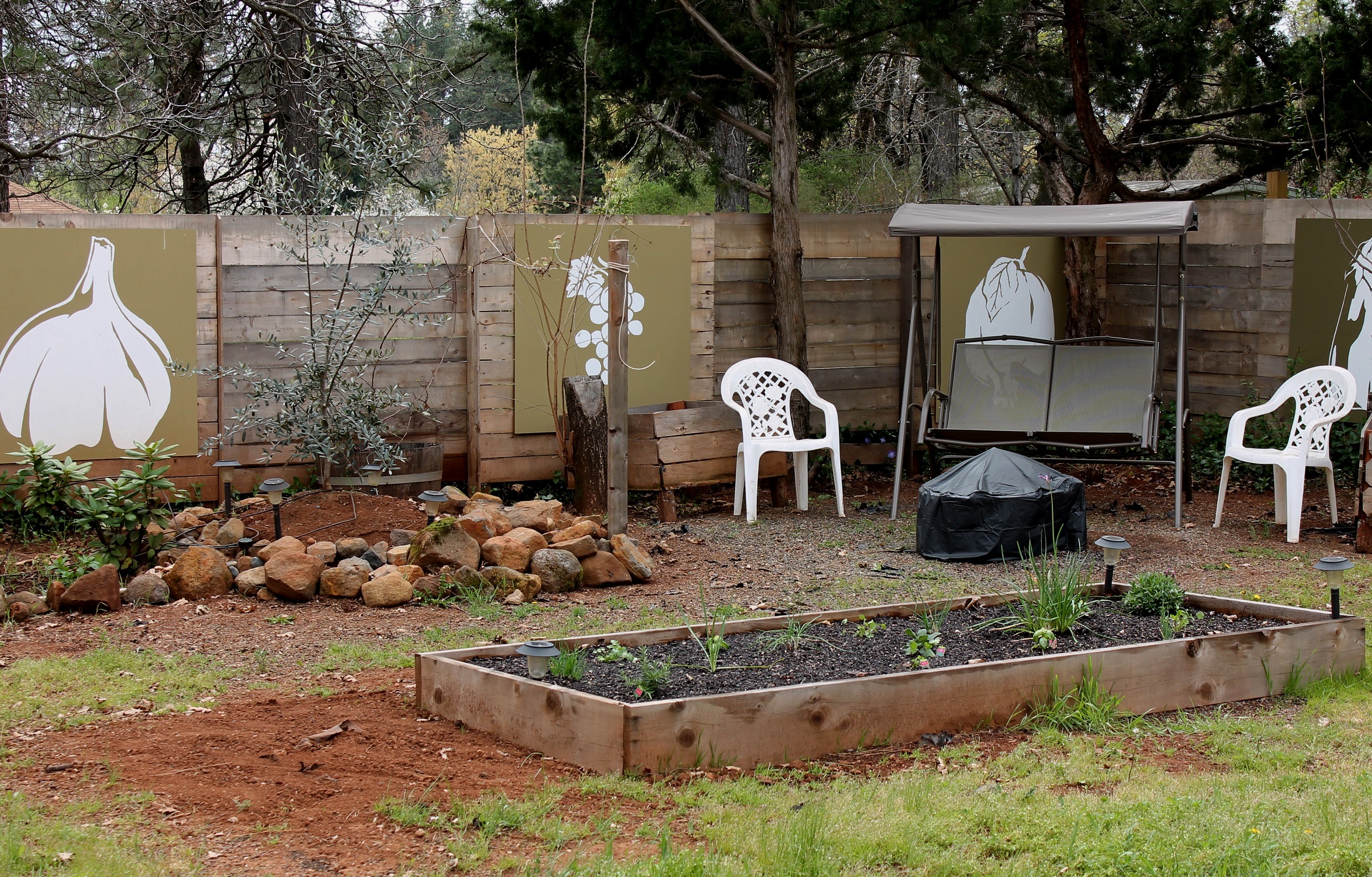 She bought and set up a swing and a fire pit back in the corner.  A very nice place to relax.