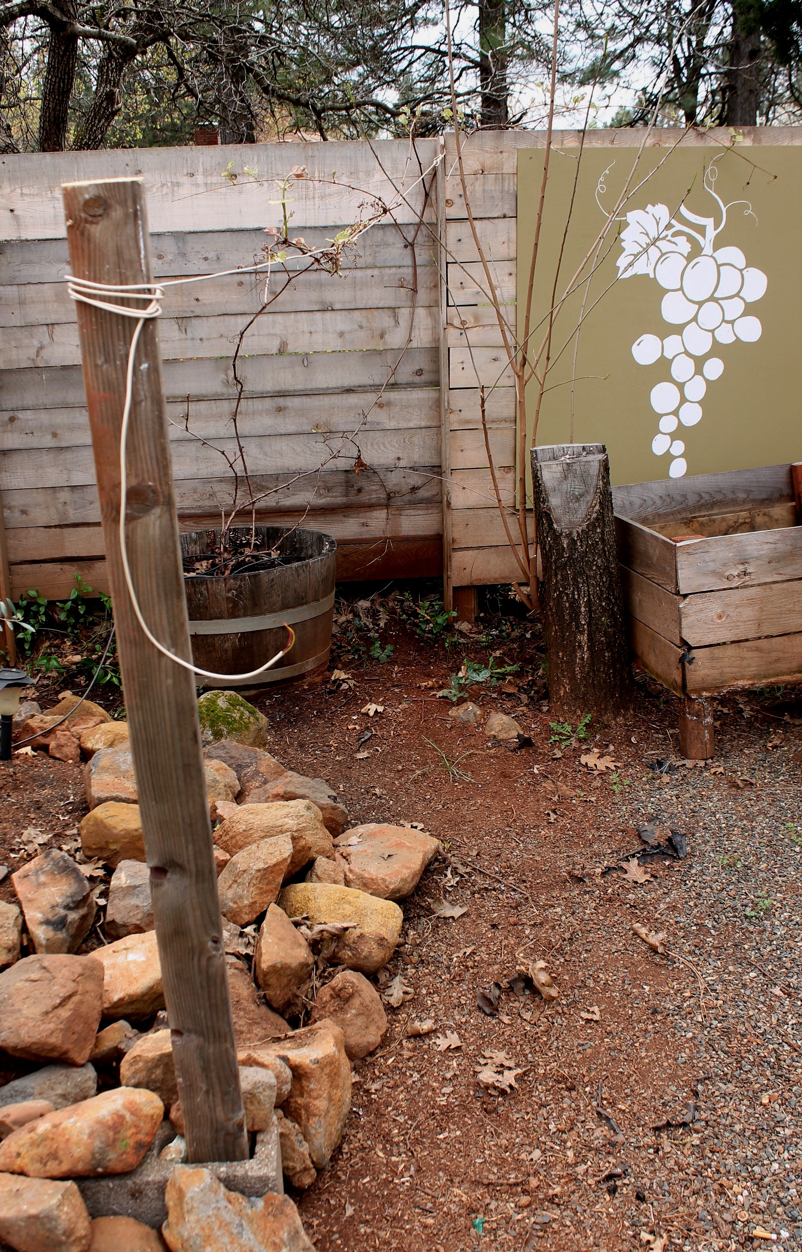 She put this post and wire up to support the grape vines.  I thought it was a neat idea!