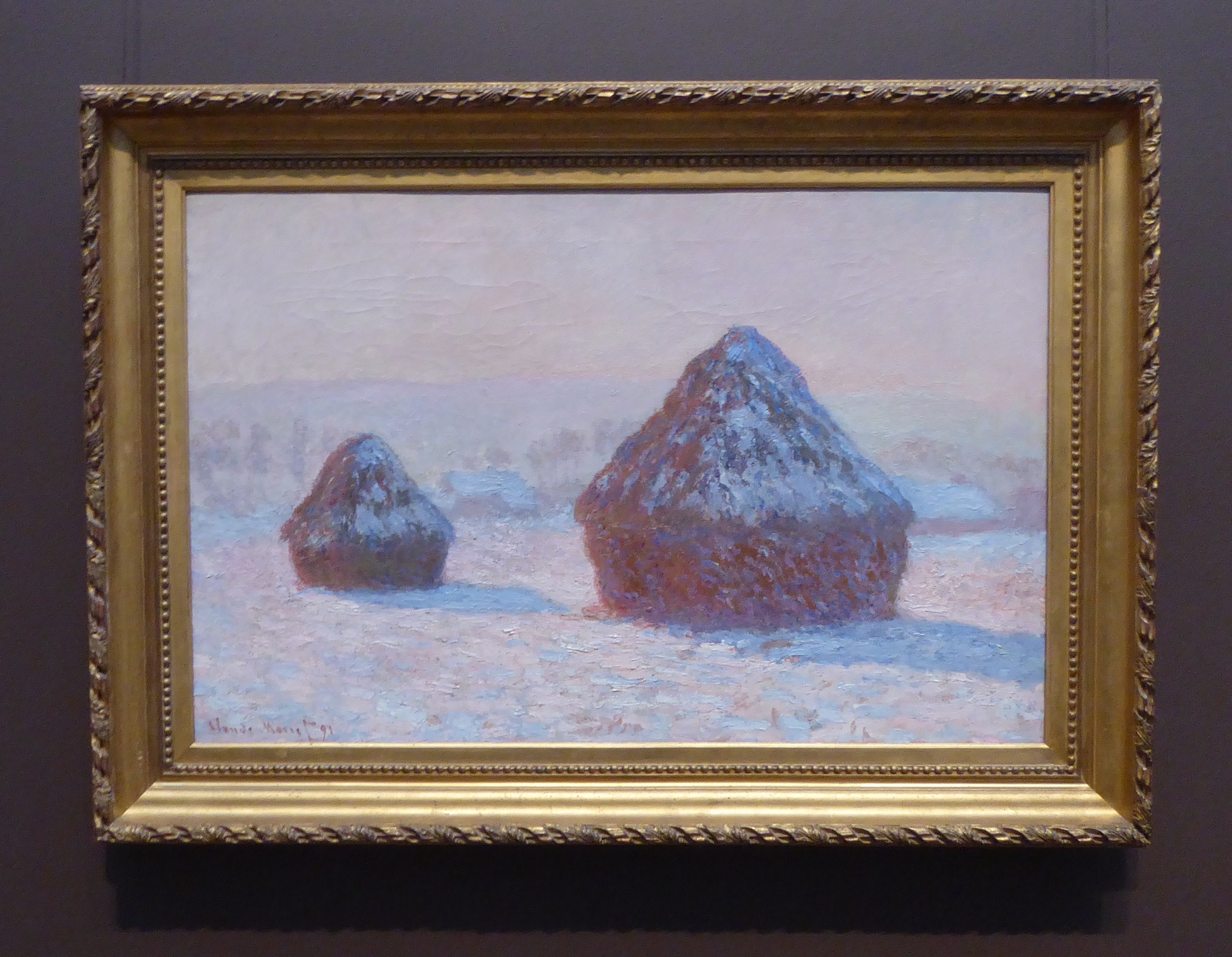 This is “Wheatstacks, Snow Effect, Morning.” You could almost feel the frost.