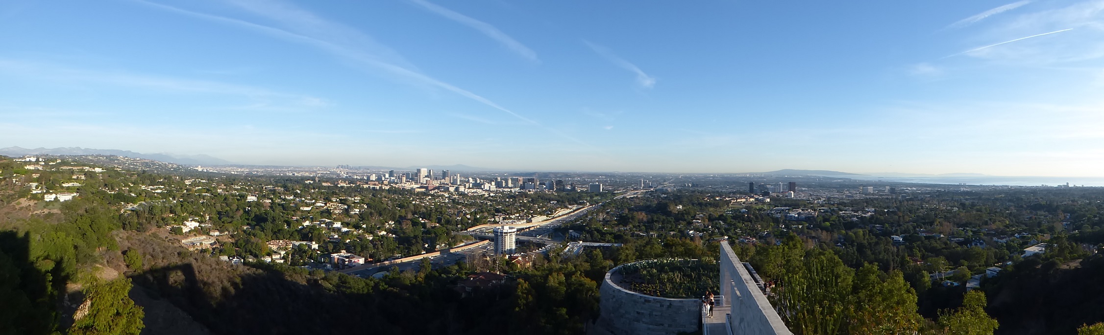 Panorama of the city with a garden area jutting out from the Getty.
