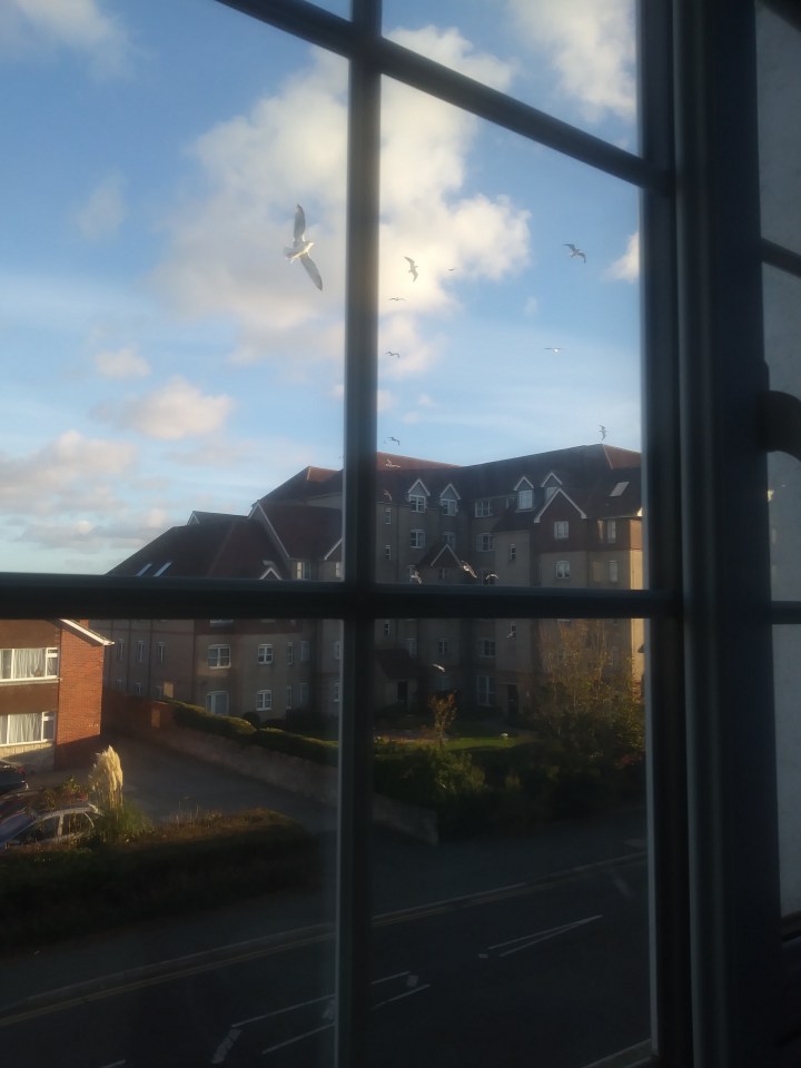 I took this picture from the room at Helen’s house in which I stayed. Seagulls would fly around in circles over this street every morning. They were beautiful to watch. Once again, Helen, thank you!