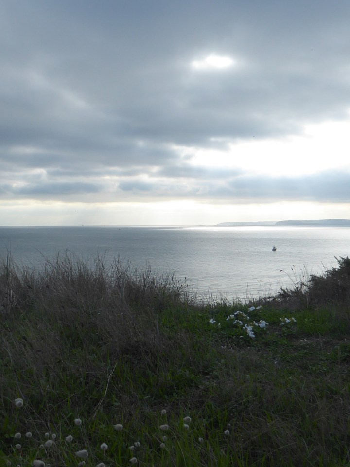 There’s Purbeck again. Dave told me Purbeck and the Isle of Wight were once a long, connected headland of chalk cliffs that have eroded away over the millennia. It makes perfect sense when you look at the white chalk sides of both islands (though it hadn’t occurred to me ’til he mentioned it!).