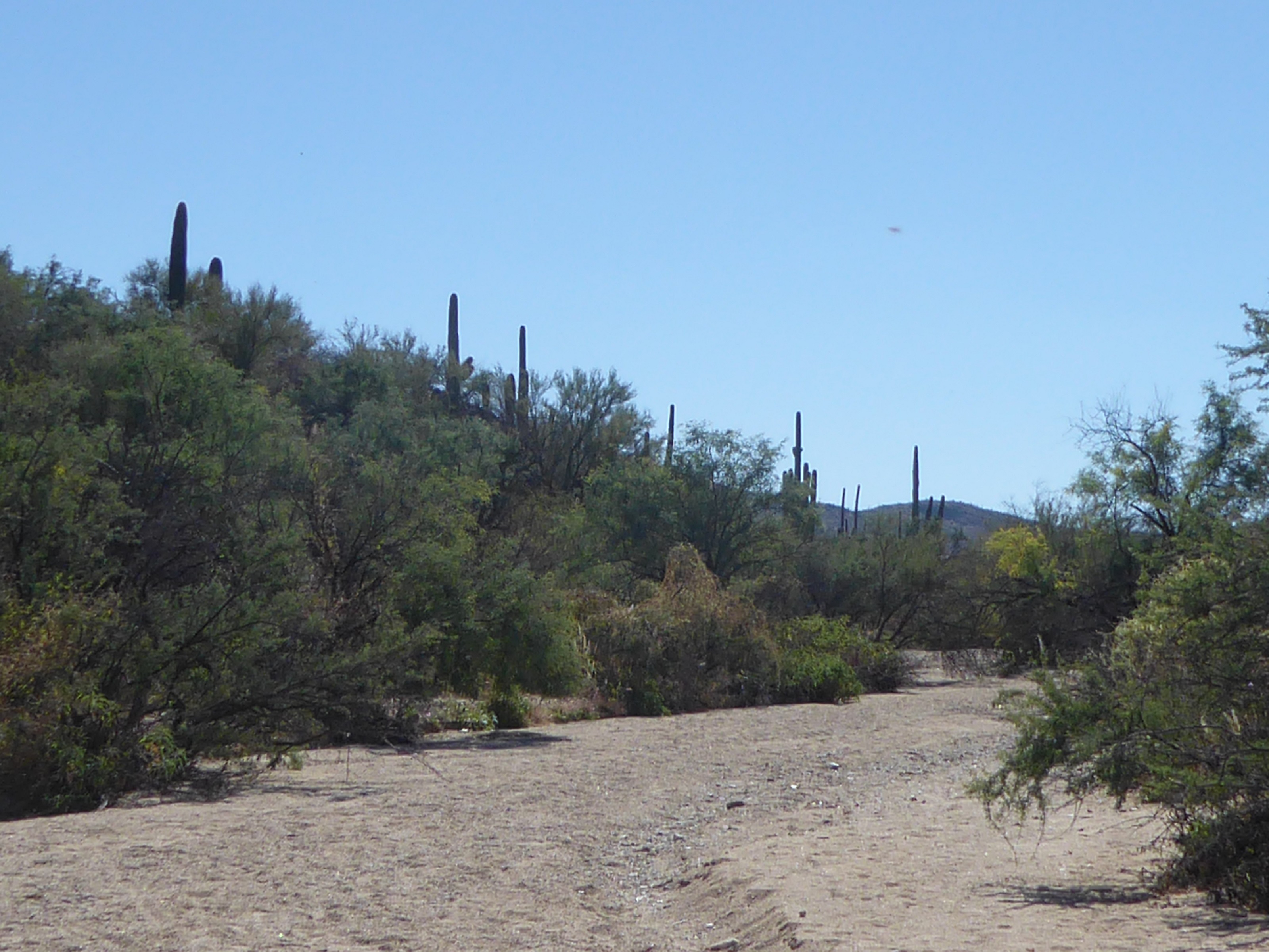 The following picture is of a dry wash where water rushes through in sudden rain storms.