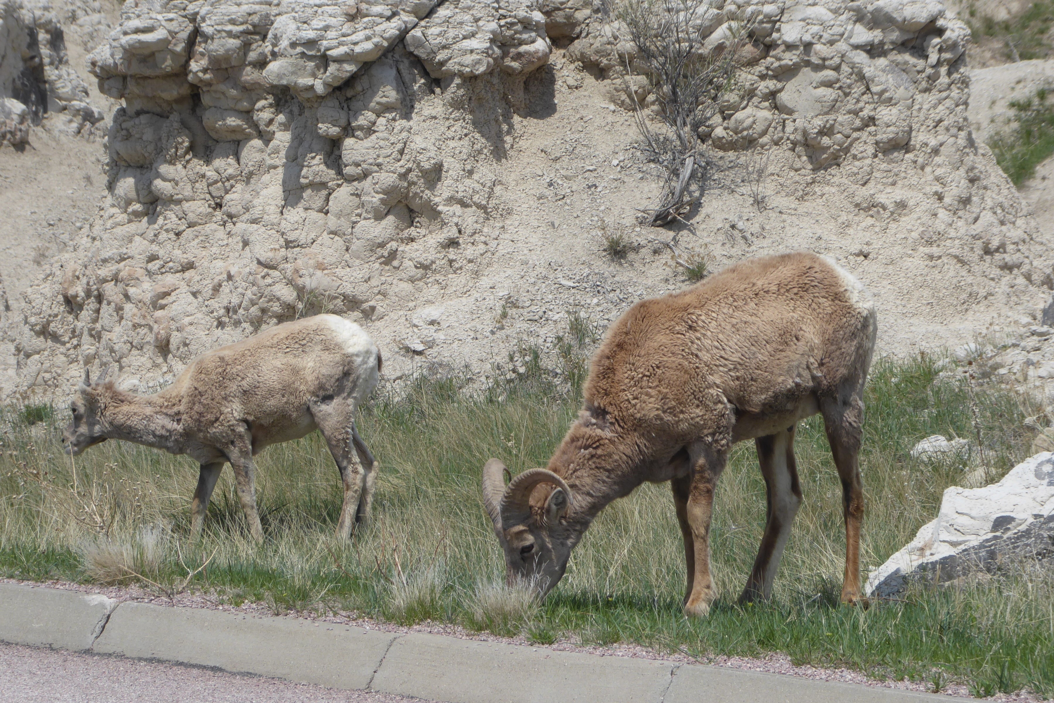 Then, of course, there was the wildlife. Big Horn Sheep on the left (these two are youngsters so their horns aren’t quite curled around yet) and on the right, a cute little prairie dog.